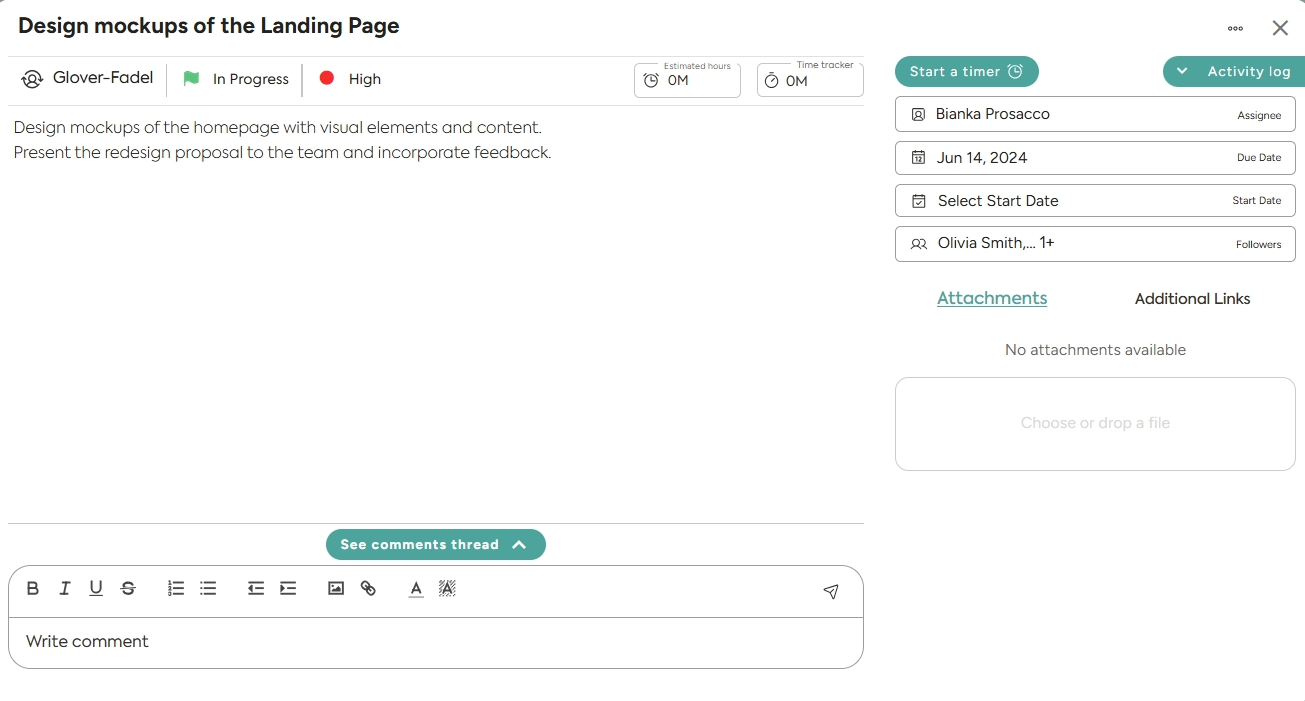 Begin a task and start the timer. Bizman’s in-task timer feature offers a game-changing advantage in task management. With the timer ticking right within the task, you get efficient time tracking and know precisely how much time you invest in a specific task. This accuracy empowers you to optimize your workflow management and make data-driven decisions. For businesses, accurate time tracking is crucial for client billing. The in-task timer simplifies this process by providing precise time records for each task, facilitating transparent and proper invoicing.